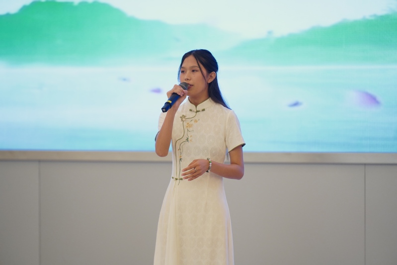 在“悦读分享会”上,我校老挝籍来华留学生XAETER KONGYAE、缅甸籍来华留学生JASHAM JA SENG TAWNG分别深情朗诵《海陵》《渔家》。JASHAM JA SENG TAWNG表示:“通过古人的文字和实地行走,我们读懂了泰州的历史,更找到了不同文化的共鸣。我们爱上了这座有诗、有水、有温度的城市。”
