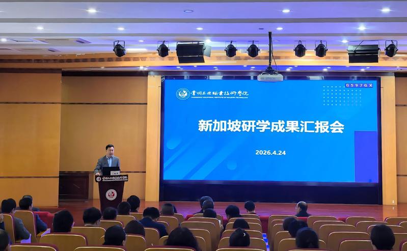 4月24日,新加坡研学成果汇报会在知行楼报告厅顺利举行。本次会议由党委委员、副校长姚庆文主持,全体参会教师共同聆听研学心得、交流职教经验、共商发展路径。